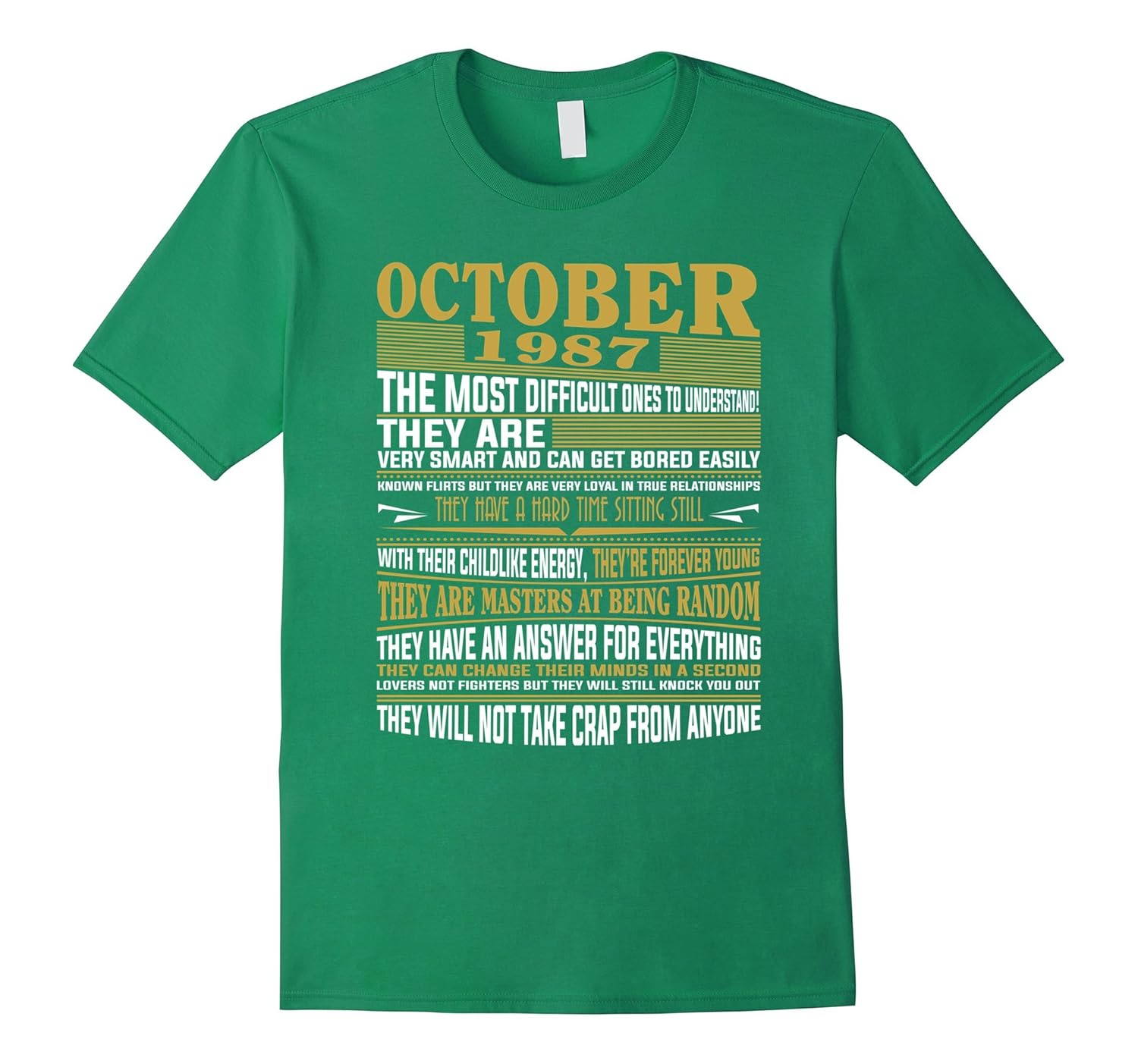 Solid colors: 100% Cotton; Heather Grey: 90% Cotton, 10% Polyester; All Other Heathers: 65% Cotton, 35% Polyester, Imported, Machine wash cold with like colors, dry low heat, Born in October 1987 Shirts, October 1987 Birhtday gift, October 1987, October 1987 T Shirts, Legends born October 1987, Kings born October 1987, Queens born October 1987, Born October 1987 Facts, Birthday shirts, birthday gift, born shirts, birth shirts, t shirts for men, t shirts for women, October 1987 t shirts, Lightweight, Classic fit, Double-needle sleeve and bottom hem