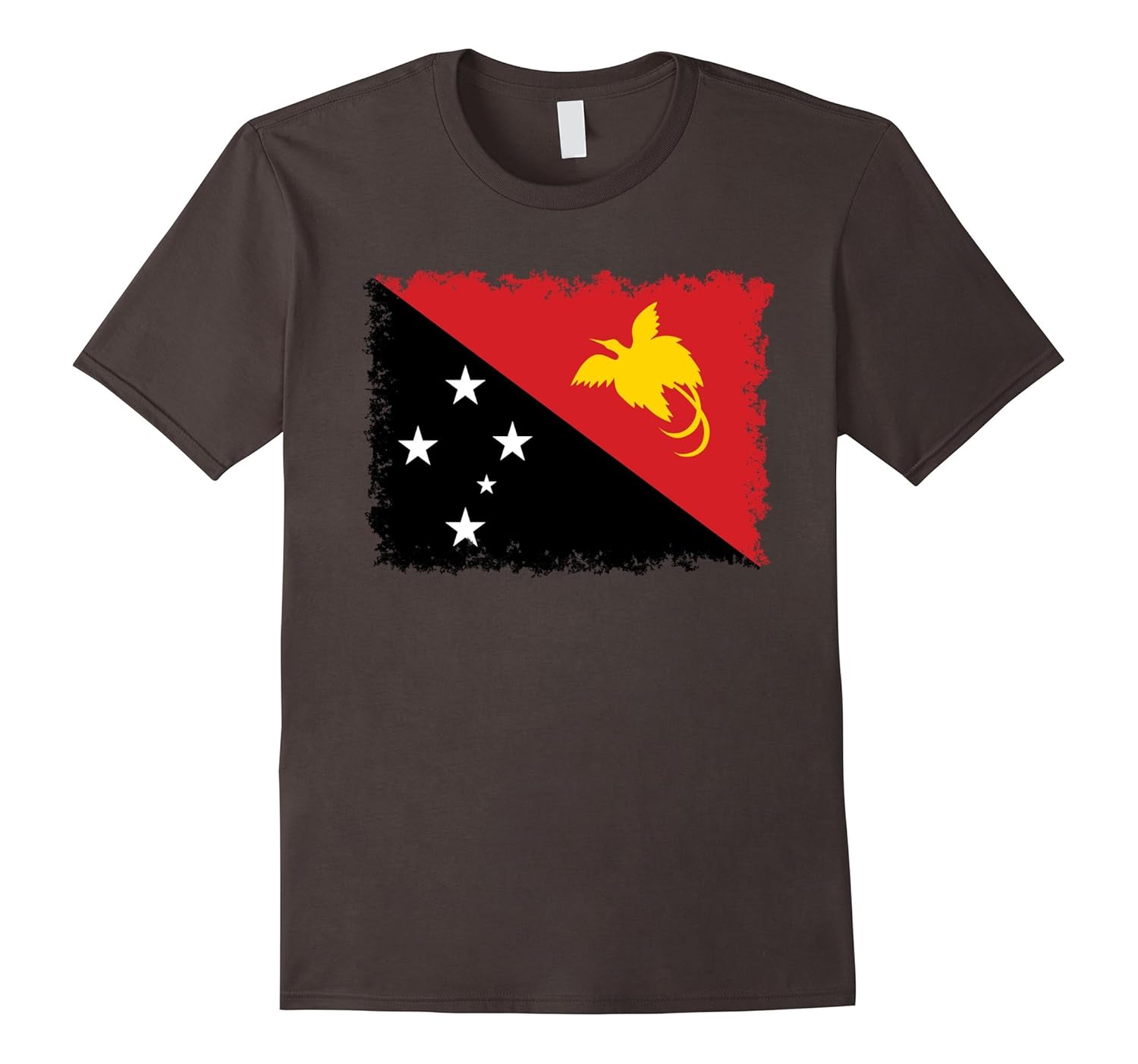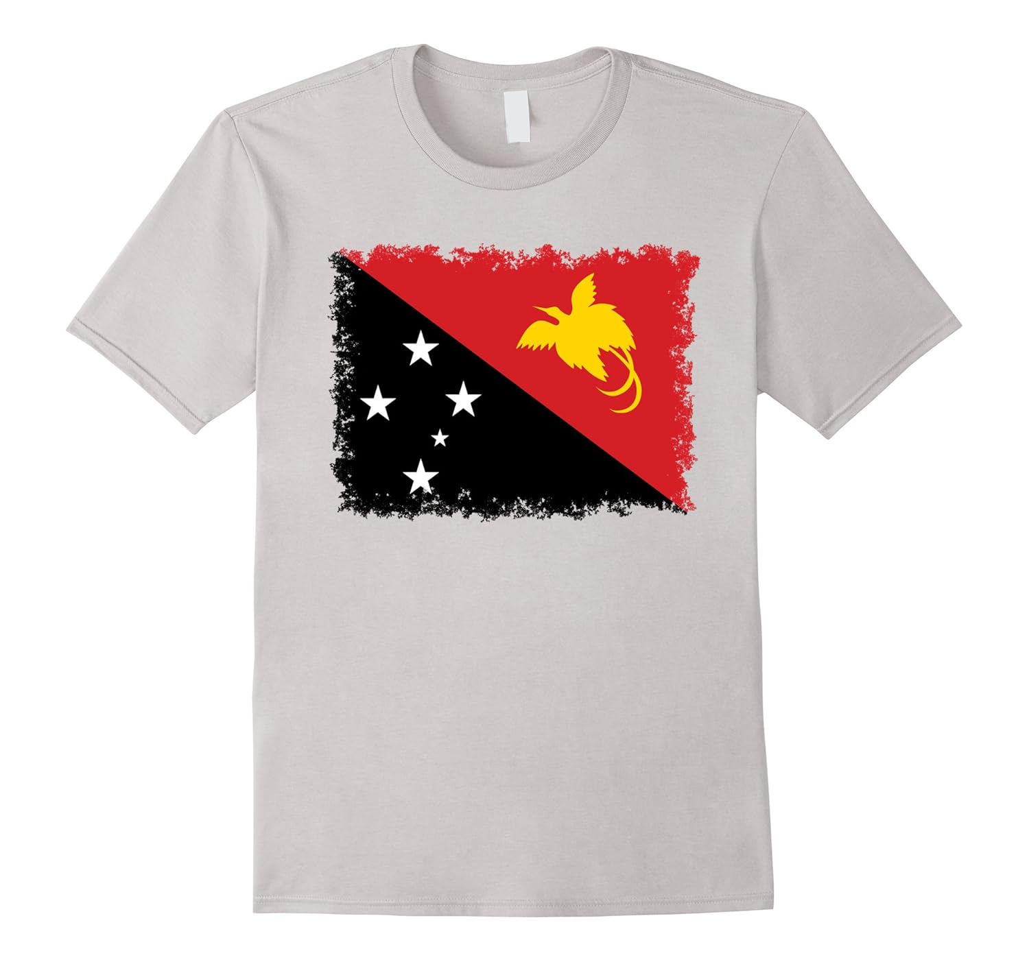 Solid colors: 100% Cotton; Heather Grey: 90% Cotton, 10% Polyester; All Other Heathers: 65% Cotton, 35% Polyester, Imported, Machine wash cold with like colors, dry low heat, papua new guinea, papua new guinean, png, port moresby, flag, National flag of Papua New guinea with distressed textures, Lightweight, Classic fit, Double-needle sleeve and bottom hem