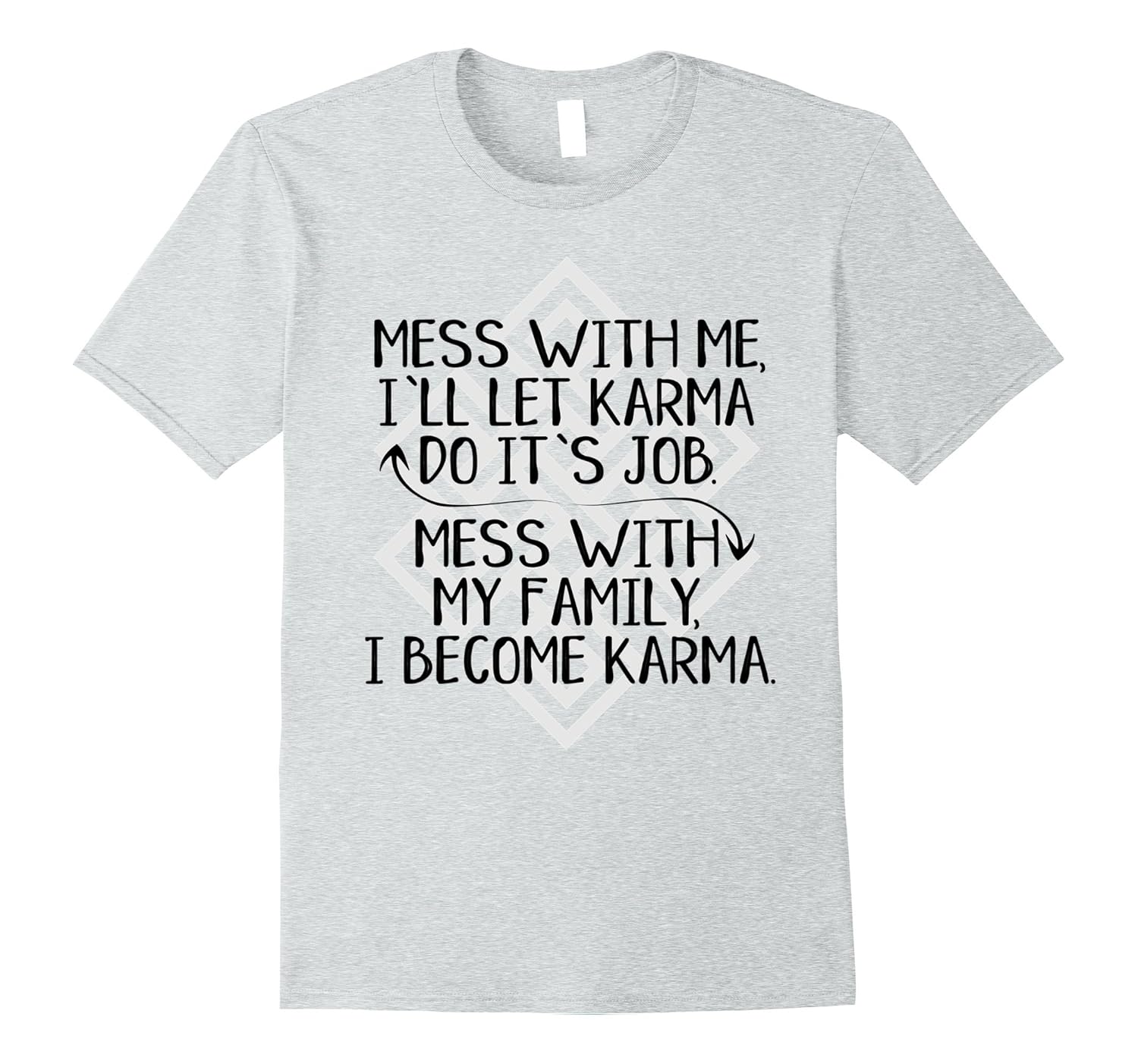 Solid colors: 100% Cotton; Heather Grey: 90% Cotton, 10% Polyester; All Other Heathers: 65% Cotton, 35% Polyester, Imported, Machine wash cold with like colors, dry low heat, Mess With Me, I”ll Let Karma Do it”s Job. Mess With My Family, I Become Karma Saying Shirts. Karma Quote, Family Saying, Karma Tees, Karma Design Shirt, Don”t Mess With Me, Don”t Mess With My Family, Typographic Design. Typography Karma Design in Black Text with Karma Symbol and Arrows Graphic. WOMAN SHIRTS RUN SMALL. This design is also available on other colors. Click our brand name to see more. Lightweight, Classic fit, Double-needle sleeve and bottom hem