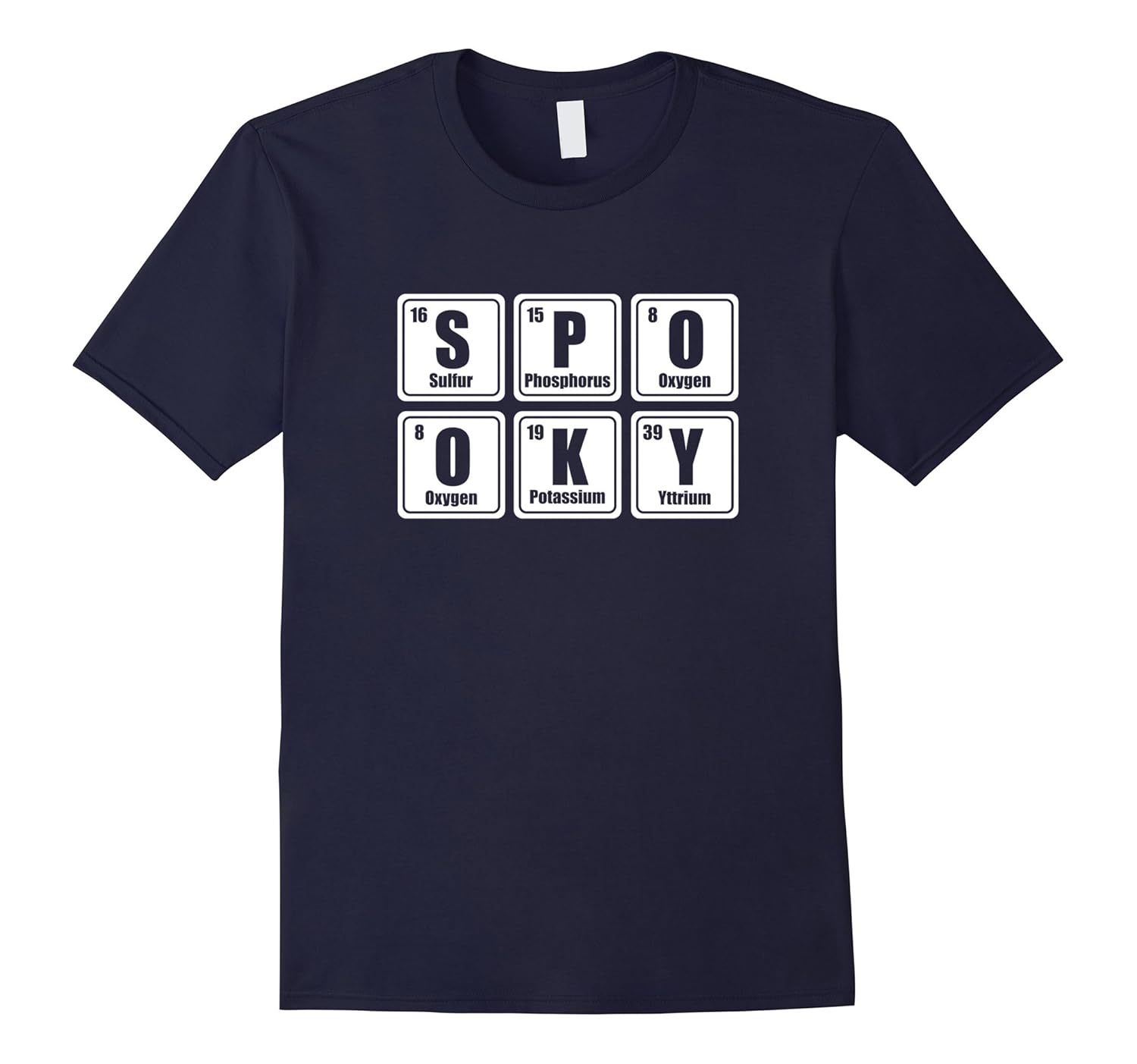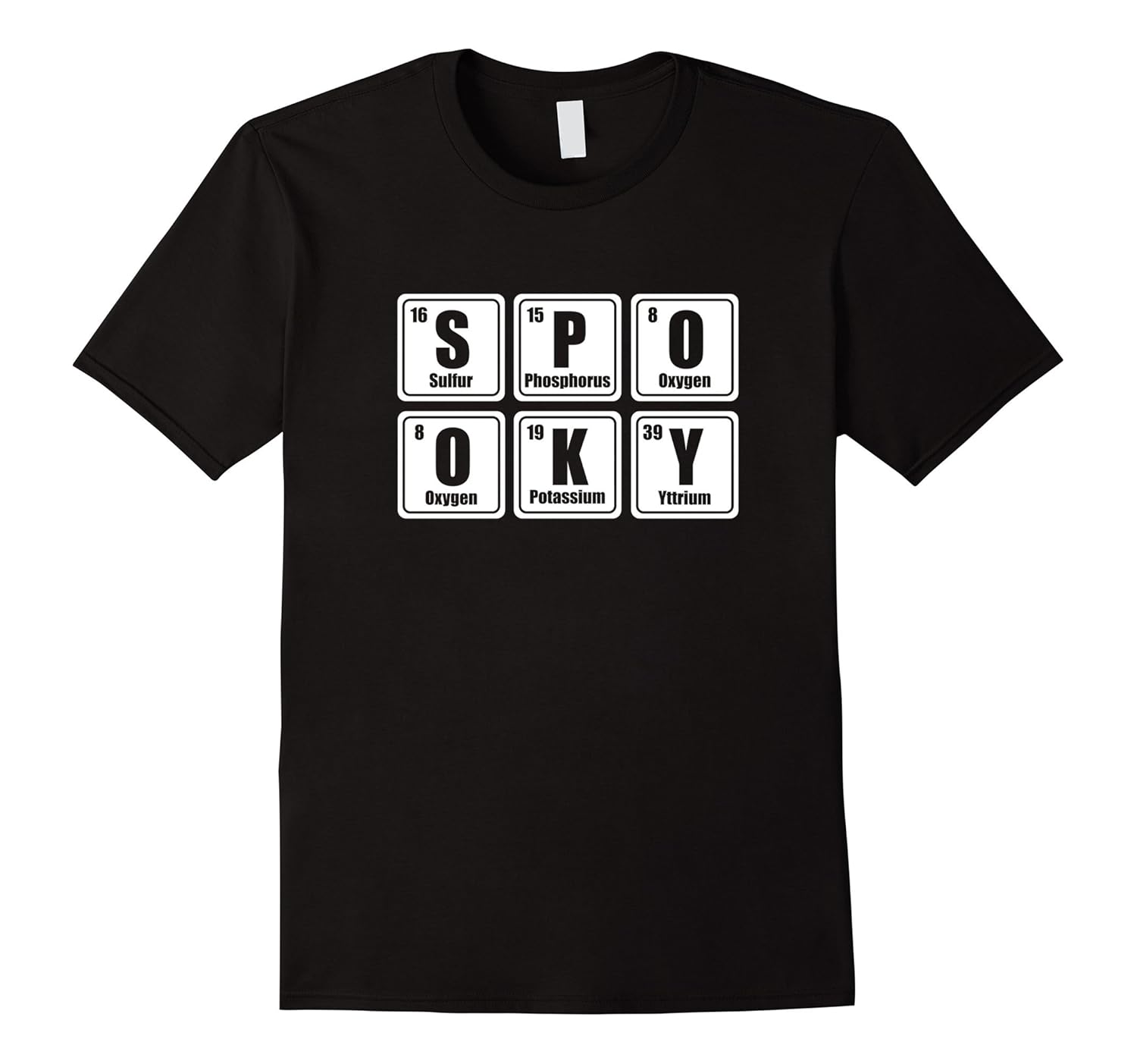 Solid colors: 100% Cotton; Heather Grey: 90% Cotton, 10% Polyester; All Other Heathers: 65% Cotton, 35% Polyester, Imported, Machine wash cold with like colors, dry low heat, If you are a science lover looking for a costume for Halloween, this t-shirt is a great choice for you. With chemistry element “Spooky” this t-shirt surely makes you stand out of the crowds. Happy Halloween Spooky T-shirt. Lightweight, Classic fit, Double-needle sleeve and bottom hem