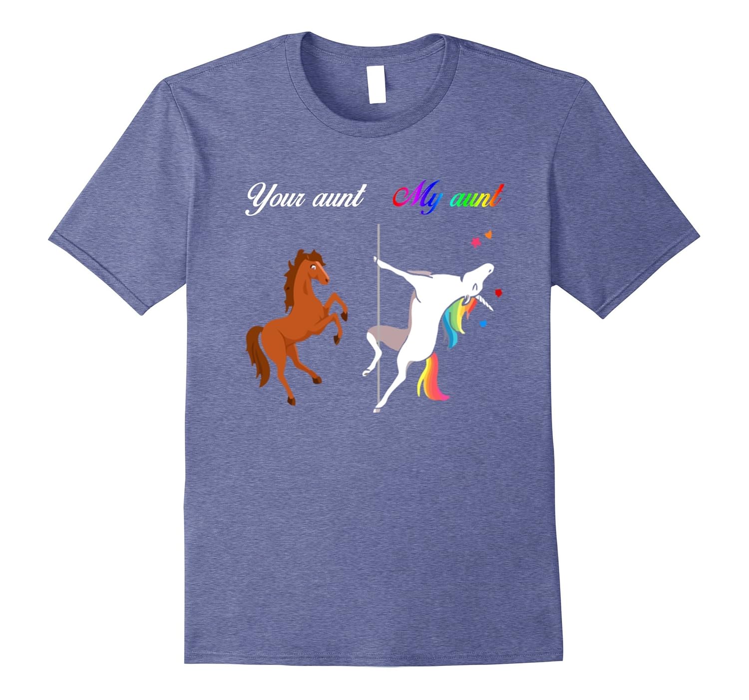 Solid colors: 100% Cotton; Heather Grey: 90% Cotton, 10% Polyester; All Other Heathers: 65% Cotton, 35% Polyester, Imported, Machine wash cold with like colors, dry low heat, Your Aunt My Aunt Unicorn T-Shirt, Lightweight, Classic fit, Double-needle sleeve and bottom hem