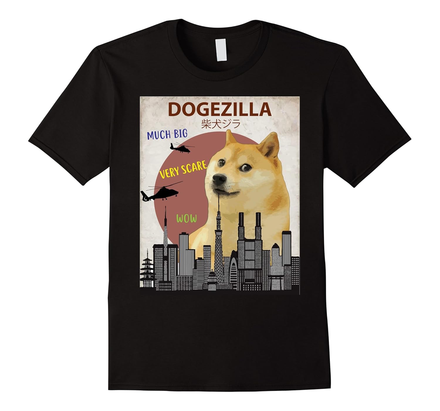 Solid colors: 100% Cotton; Heather Grey: 90% Cotton, 10% Polyester; All Other Heathers: 65% Cotton, 35% Polyester, Imported, Machine wash cold with like colors, dry low heat, This novelty Japanese movie poster graphic design features the Doge Shiba Inu dog that everyone loves. Much Big, Very Scare, Wow. Halloween Doge shirt perfect for October or to laugh all year round. Shibe pet puppies, A fun gag gift or fun birthday present. Dank meme, cool cute memes, Japan, China, Asia, Engrish Doge Tee is sized to fit for men, women, kids, boys and girls. For a looser fit, order a size up. Lightweight, Classic fit, Double-needle sleeve and bottom hem