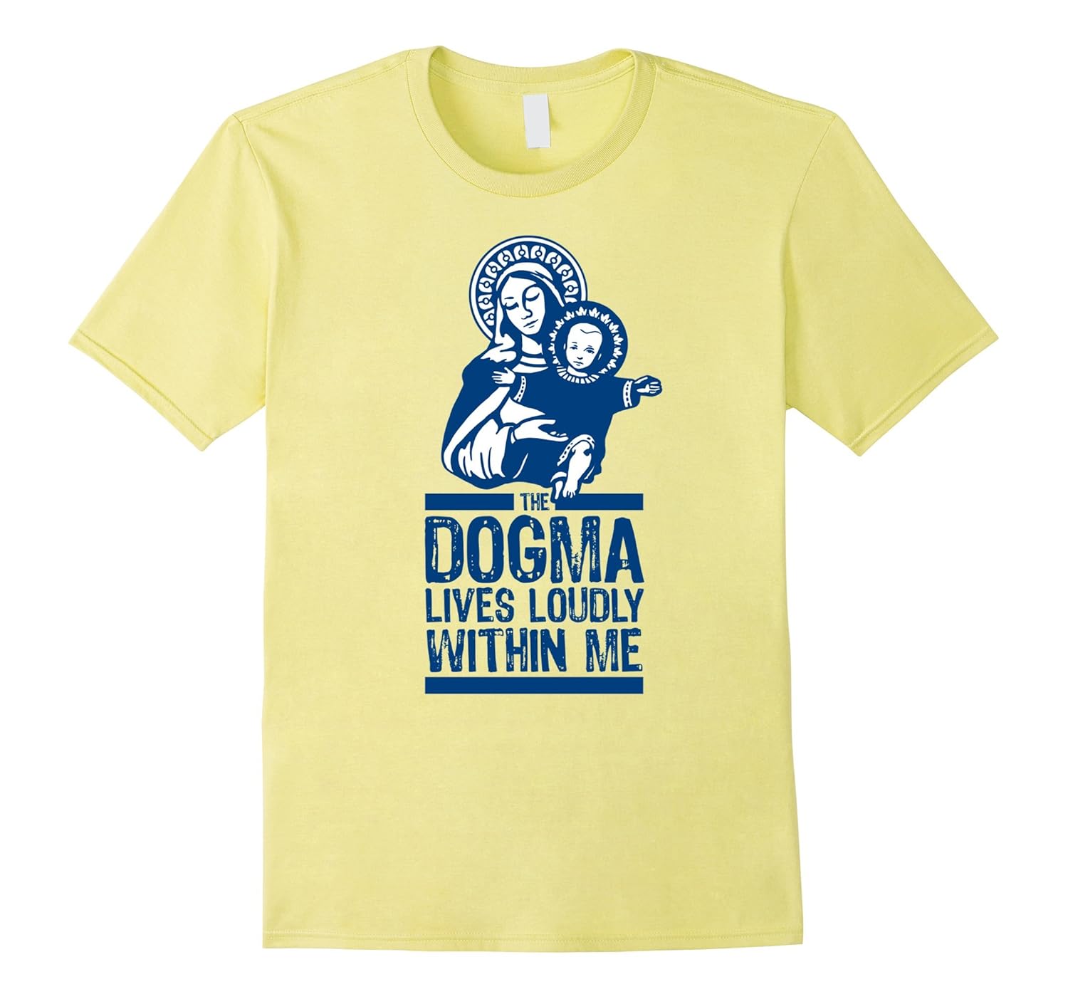Solid colors: 100% Cotton; Heather Grey: 90% Cotton, 10% Polyester; All Other Heathers: 65% Cotton, 35% Polyester, Imported, Machine wash cold with like colors, dry low heat, Dogma Lives Loudly Within Me Mary the Madonna Catholic T-Shirt is for Catholics (even Orthodox Catholics 🙂 who have faith, who love Jesus and Mary the Madonna the Mother of God. This is a religious political shirt to help make a statement for your faith. If The Dogma Lives Loudly Within You, you will love this tee. Wear it for political rallies, Catholic or conservative events, Republican parties, or to the Capitol. Show your support for conservatives everywhere. Makes a great gift. Lightweight, Classic fit, Double-needle sleeve and bottom hem