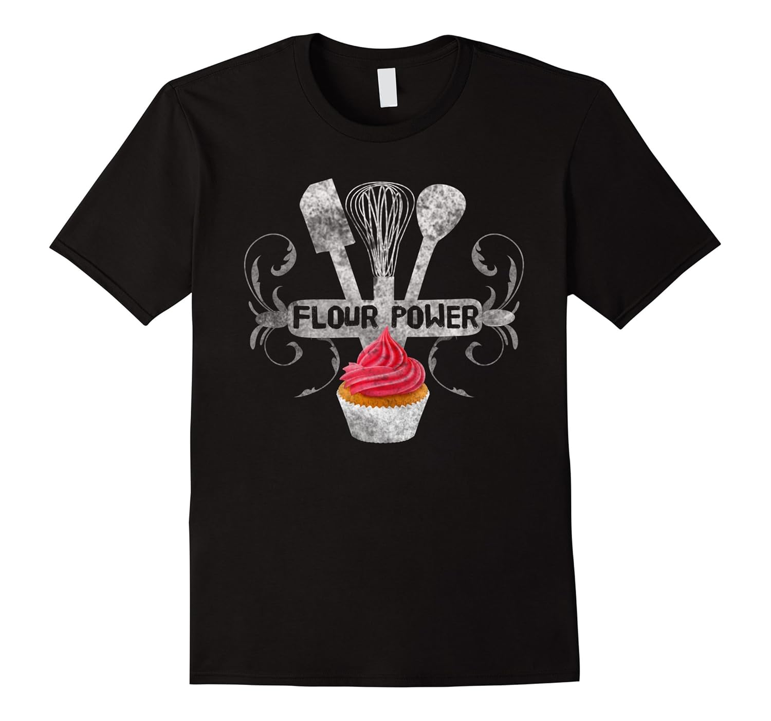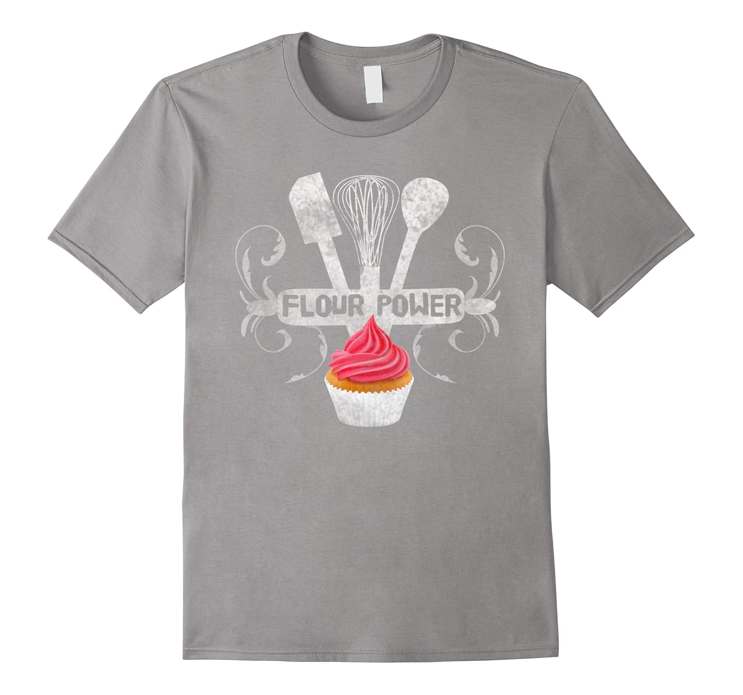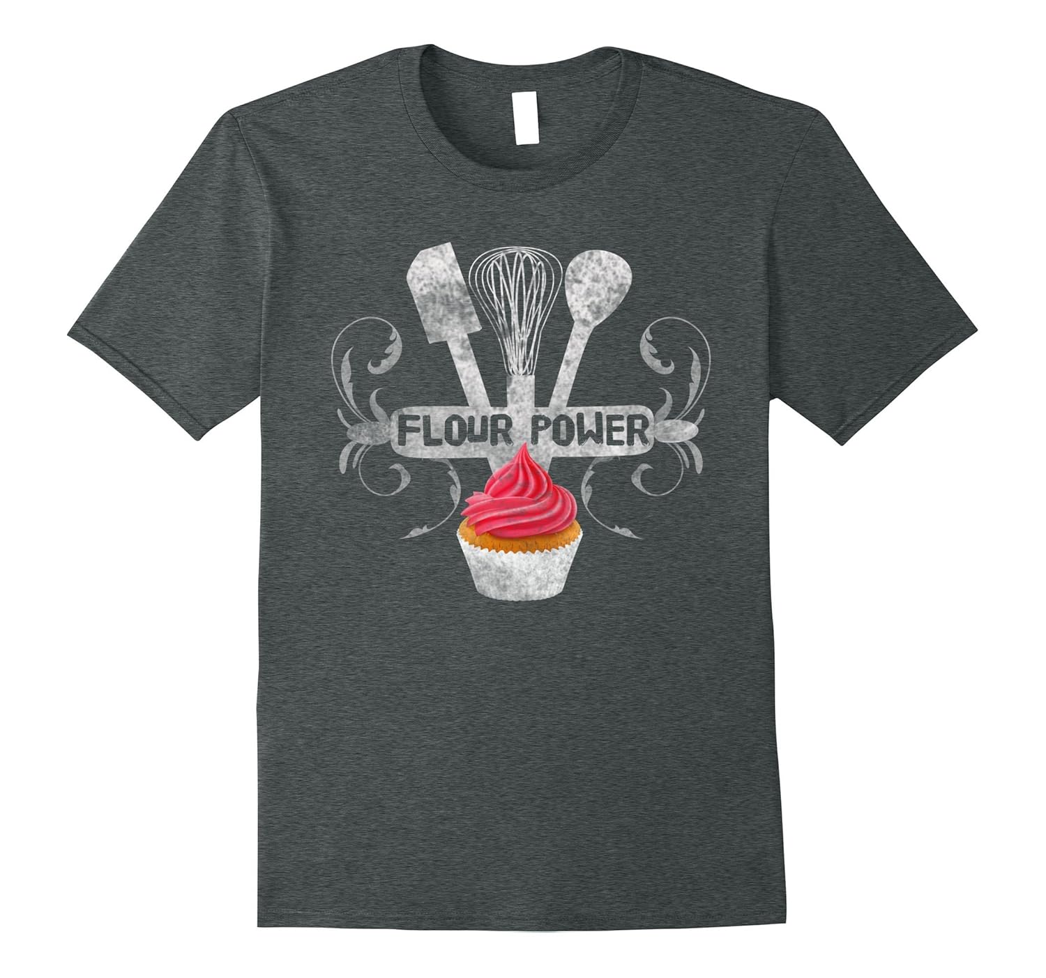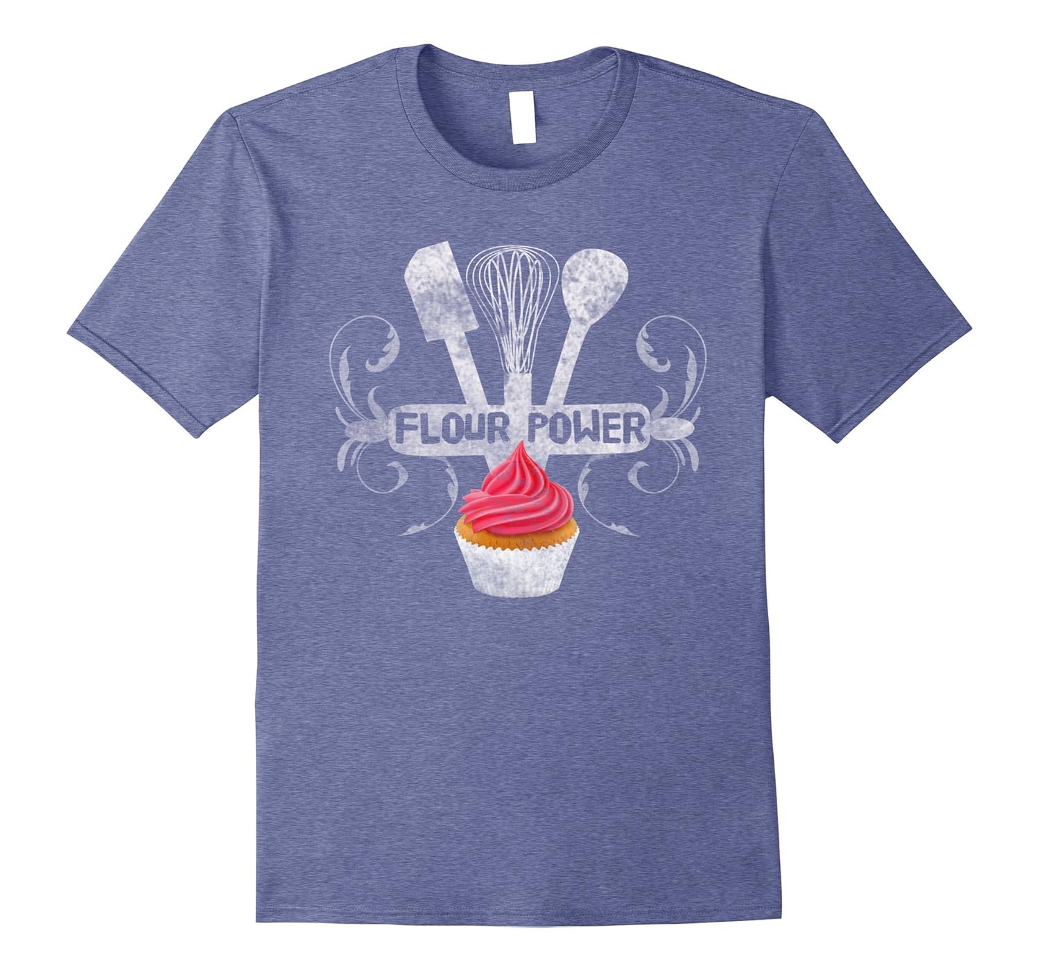 Solid colors: 100% Cotton; Heather Grey: 90% Cotton, 10% Polyester; All Other Heathers: 65% Cotton, 35% Polyester, Imported, Machine wash cold with like colors, dry low heat, Anyone that loves baking, decorating, cooking, making cakes, cupcakes or treats will LOVE this tshirt. Cute, vintage, distressed baking utensils with cupcake, Mom, Dad, Grandma, sister or brother, girlfriends and boyfriends will enjoy this soft comfy Flour Power Baking shirt. Great gift, Lightweight, Classic fit, Double-needle sleeve and bottom hem