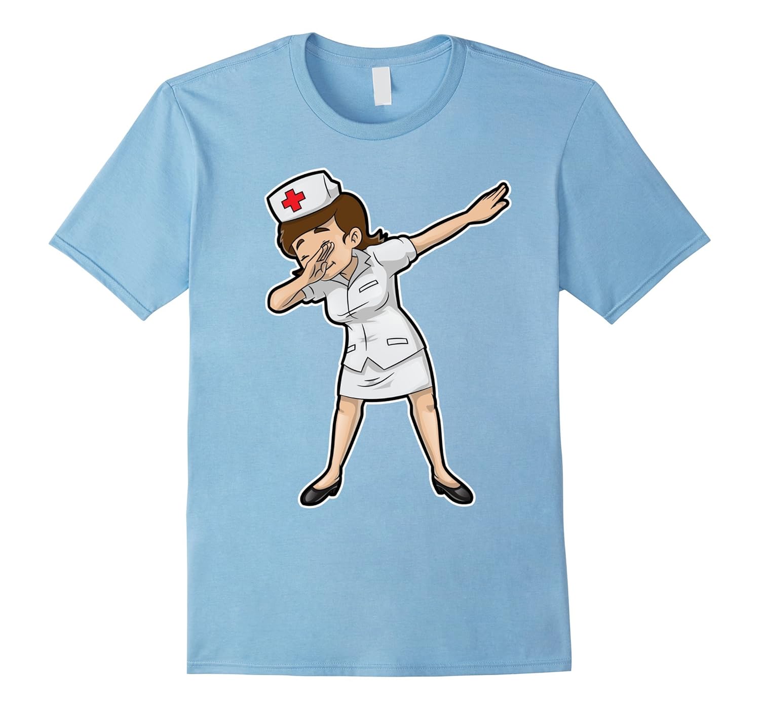 Solid colors: 100% Cotton; Heather Grey: 90% Cotton, 10% Polyester; All Other Heathers: 65% Cotton, 35% Polyester, Imported, Machine wash cold with like colors, dry low heat, Funny Nurse with uniform and hat doing the famous dab dance pose T-shirt. Makes perfect presents or outfit for nurse, nurse instructor, nurse practitioner, nurse in training, nurse student. Great gift for nurse graduation or retirement. This Dabbing Nurse Graphic Tee is also great for Birthday gifts, Halloween party, Nurse party, christmas gifts, Thanksgiving gifts. Lightweight, Classic fit, Double-needle sleeve and bottom hem