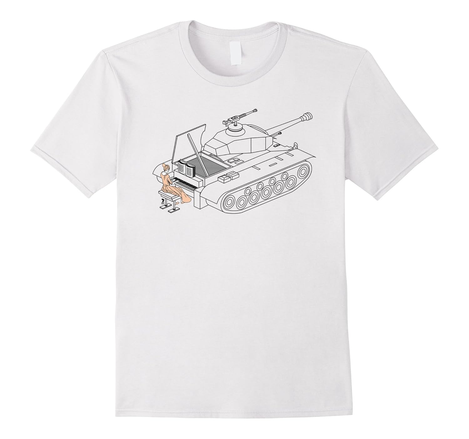 Solid colors: 100% Cotton; Heather Grey: 90% Cotton, 10% Polyester; All Other Heathers: 65% Cotton, 35% Polyester, Imported, Machine wash cold with like colors, dry low heat, t shirt, t shirts, footprint, piano, tank, girl, playing, peace, not war, Lightweight, Classic fit, Double-needle sleeve and bottom hem